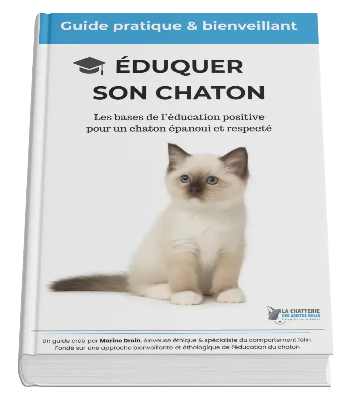 Forte de plus de 16 ans d’expérience comme éleveuse et comportementaliste félin, et en tant que zoothérapeute accompagnant au quotidien des personnes grâce à la médiation animale, j’ai aidé des centaines de propriétaires à comprendre et éduquer leur chaton de manière bienveillante. Ce livre est la synthèse de ces années de terrain et d’accompagnement, pensée pour être claire, simple et immédiatement applicable, même si c’est votre premier chat.